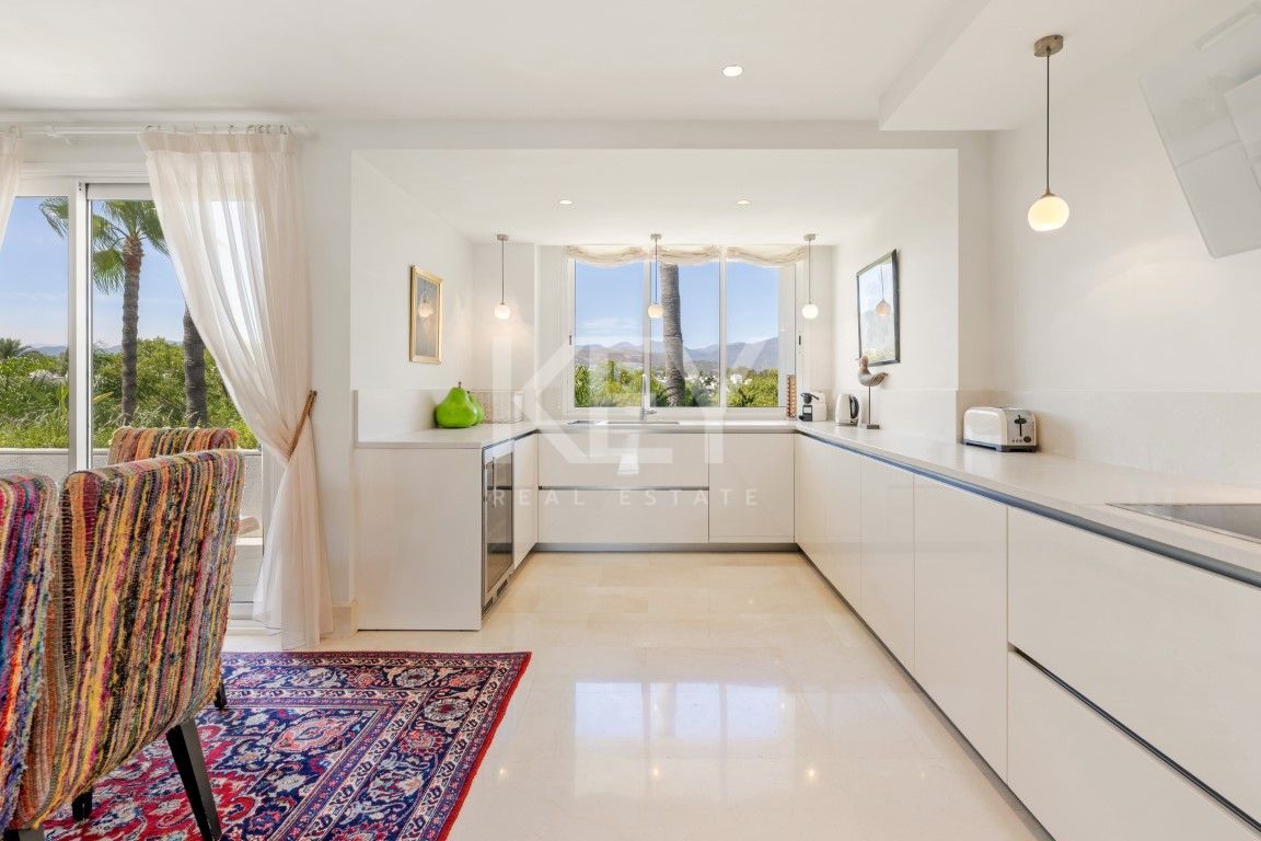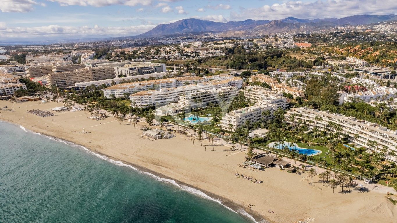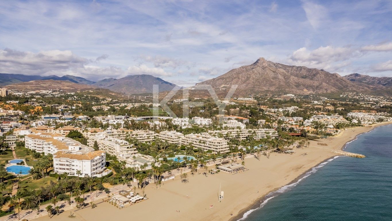 Пентхаус находится в закрытом жилом комплексе с круглосуточной охраной, ухоженными тропическими садами, спа-зоной, фитнес-залом и большим общим бассейном с прямым выходом к пляжу. В пешей доступности расположены бутики премиум-класса, рестораны высокой кухни, пляжные клубы и яхтенная марина Пуэрто-Бануса — одного из самых динамичных районов Марбельи.