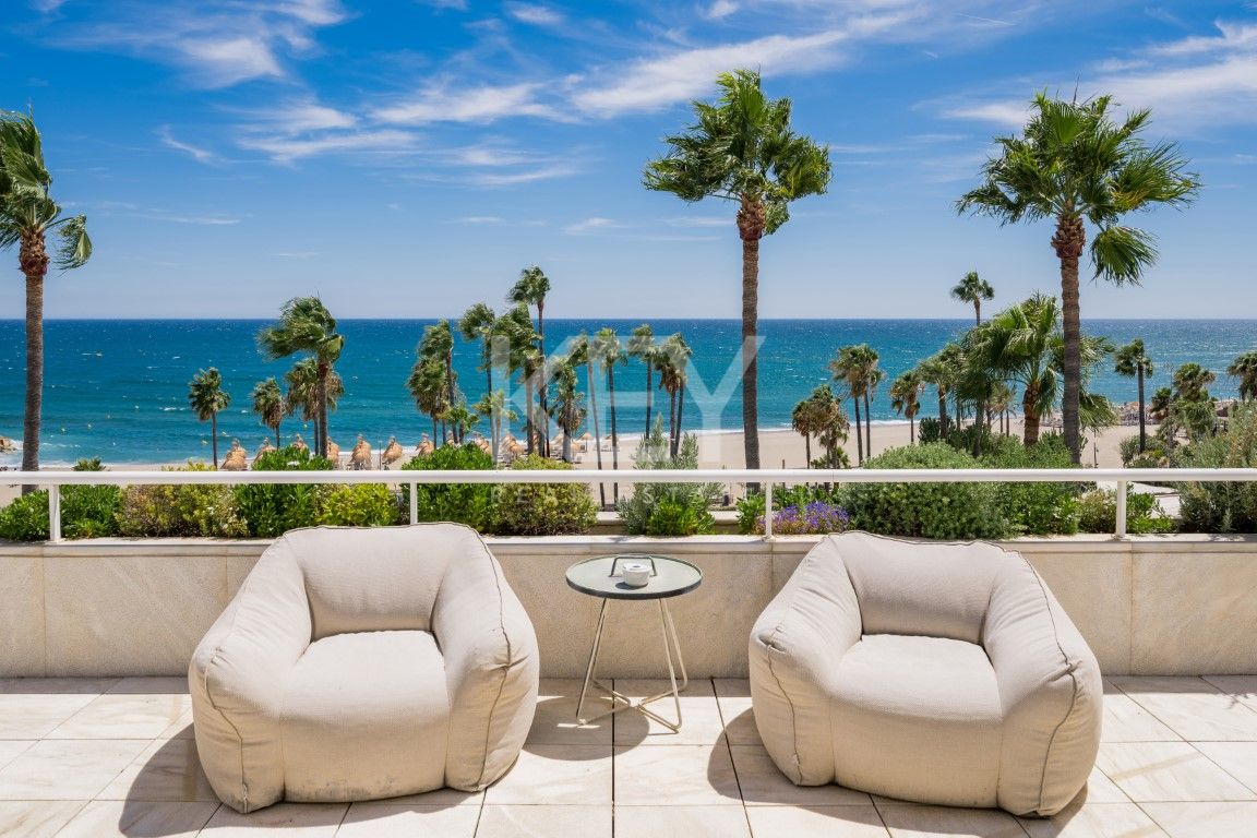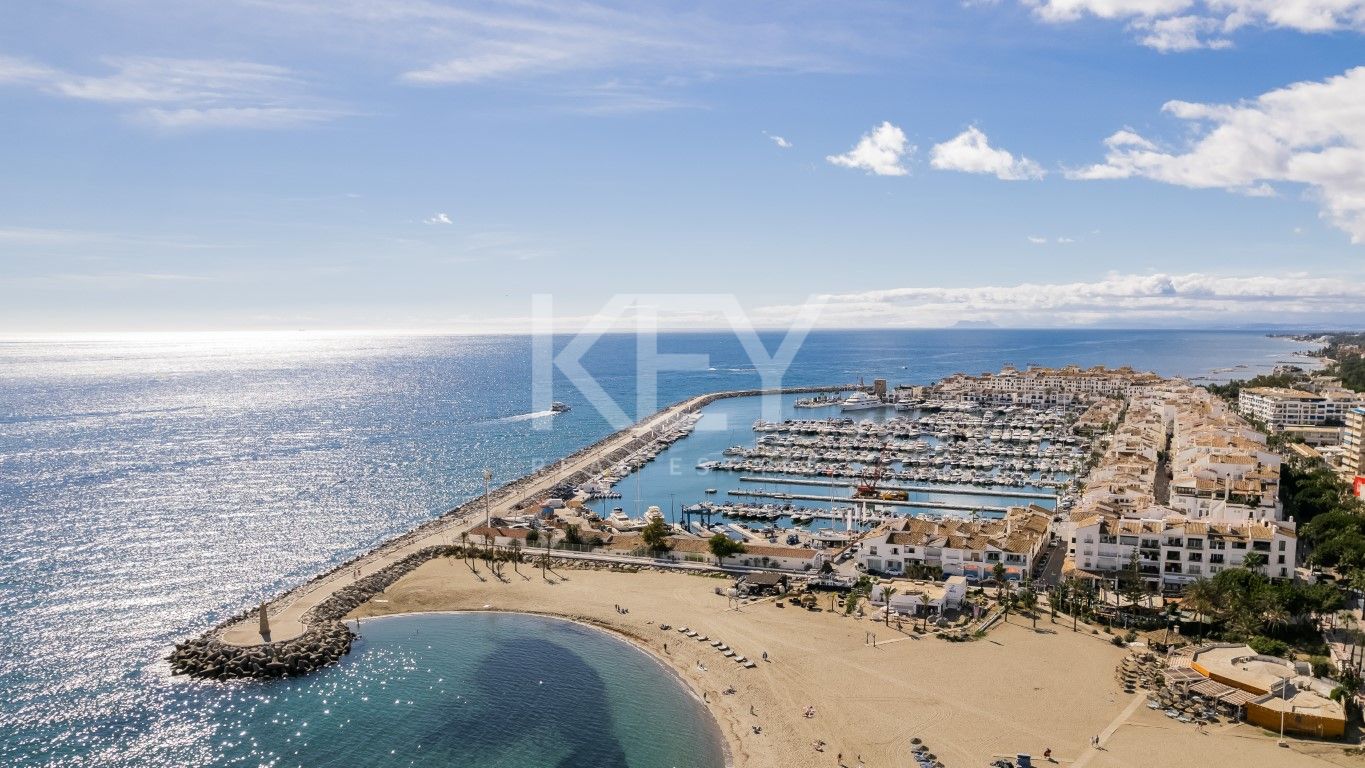Расположенный в одном из самых востребованных прибрежных районов Puerto Banús, этот элегантный двухуровневый пентхаус представляет собой отличную возможность для тех, кто ищет элитную недвижимость в Марбелье, апартаменты на первой линии моря или выгодную инвестицию на побережье Коста-дель-Соль. Пространство распределено на двух уровнях и сочетает современный комфорт со средиземноморским стилем, предлагая открытые виды на море и прямой доступ к активному прибрежному образу жизни.