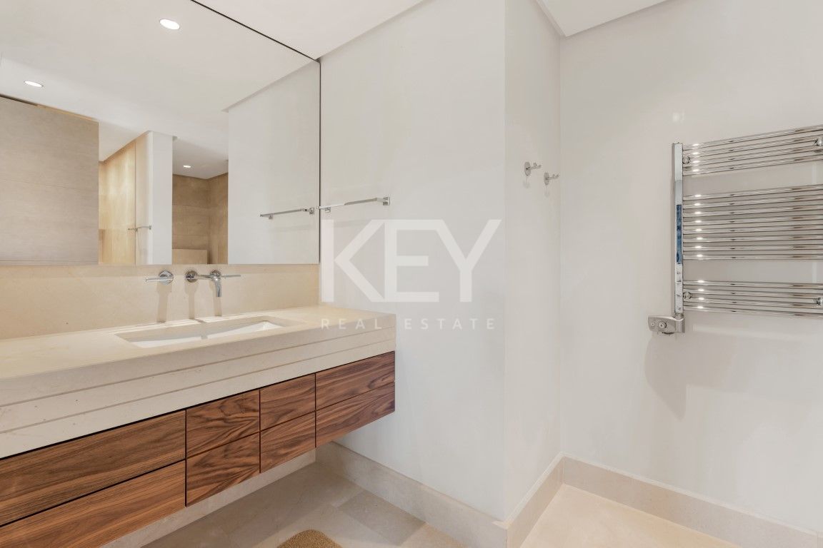 Южная ориентация обеспечивает естественное освещение в течение всего дня, подчеркивая простор интерьеров и плавный переход к большим террасам. Эти внешние зоны идеально подходят для круглогодичного использования, позволяя наслаждаться мягким климатом Марбельи. Основная гостиная имеет прямой выход на террасу с панорамным видом, а современная полностью оборудованная кухня соединена с дополнительной обеденной зоной на открытом воздухе с видом на море и знаменитую гору La Concha.